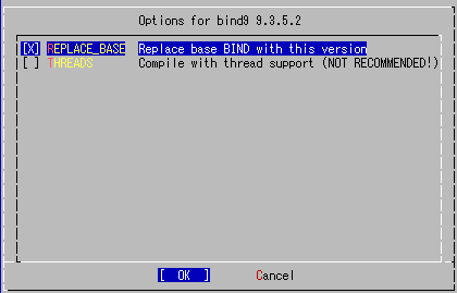 オプション指定で、もともとのBINDを入れ替えることにする。