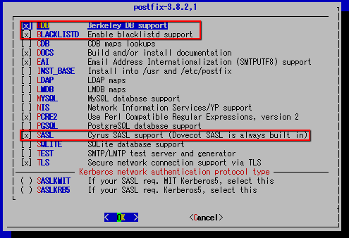 BDB BLACKLISTD と SASL にチェック追加