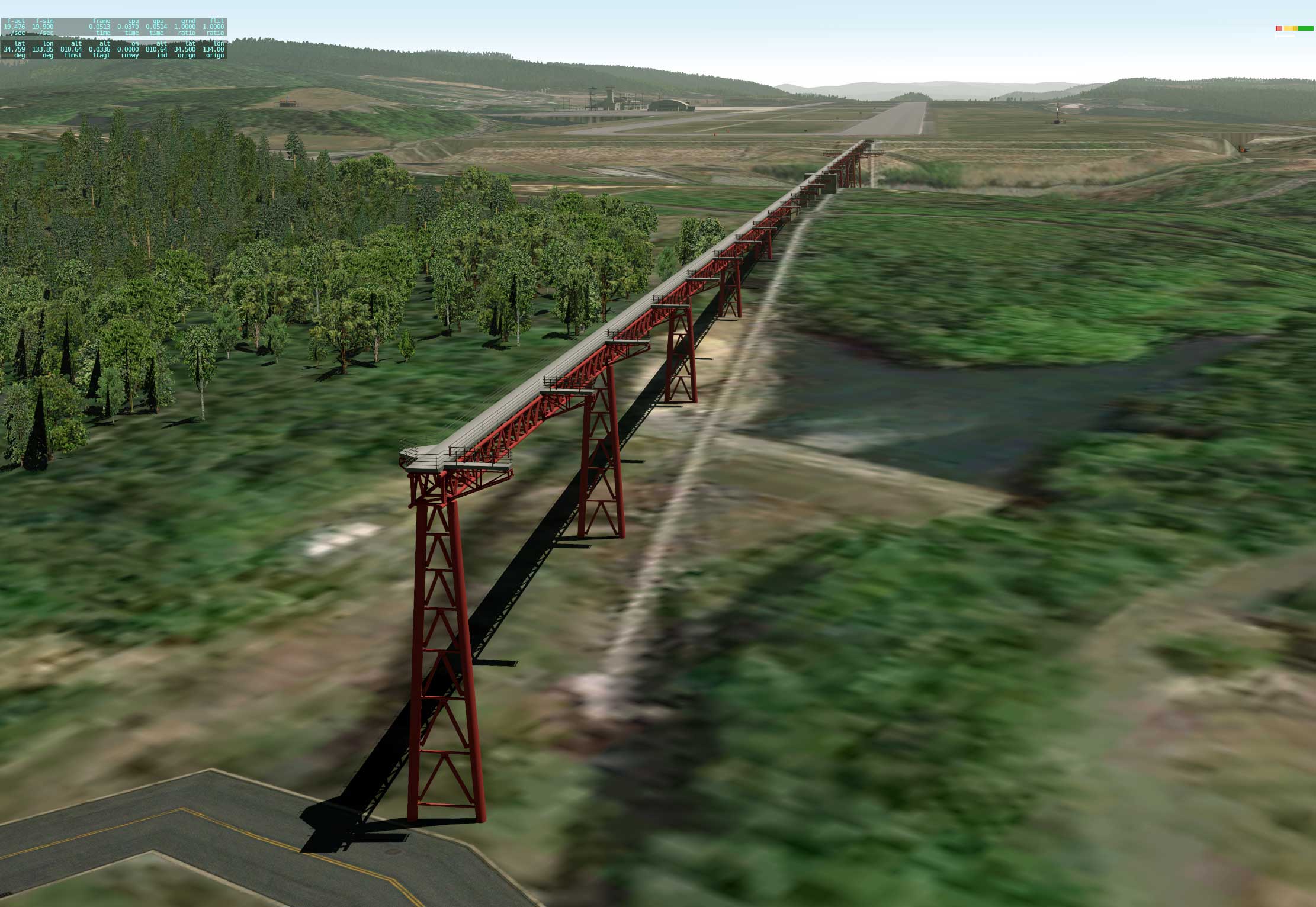 上記環境では、RJOB RWY07 に進入灯橋梁を水平に設置すると、滑走路端600mの山(丘?)が滑走路面よりも高いため、山腹に潜ってしまいます。