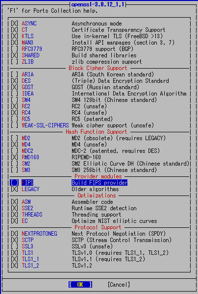 FIPS のチェックを外し、LEGACY のチェックを入れる。