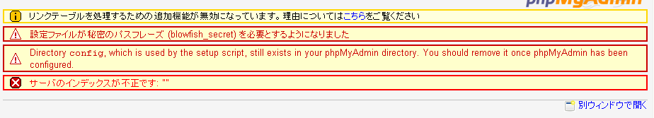 # mysql -u root -p < /home/www/myhome/phpmyadmin/scripts/create_tables.sql Enter password:← パスワード(mysql管理者)の入力