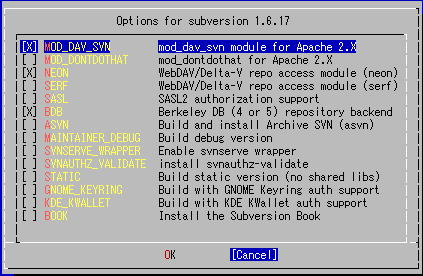 一番上のオプション、MOD_DAV_SVN にチェックすること。