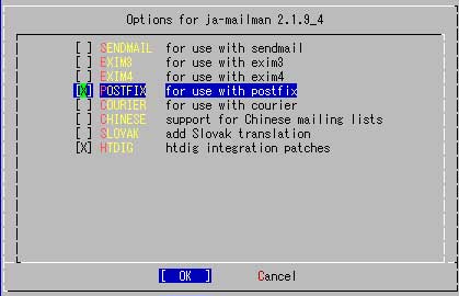 として、postfix integrate と postfix にチェックをいれて、再度インストール、でOK