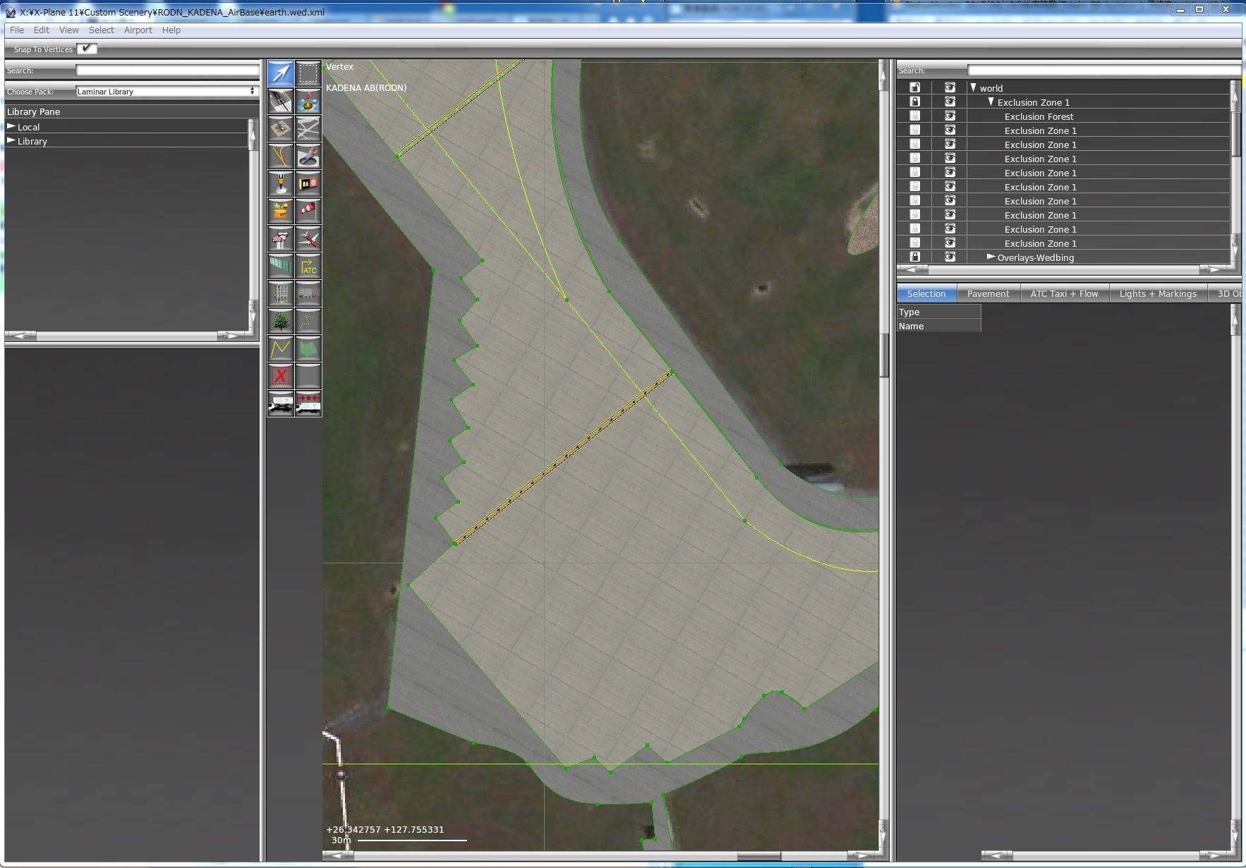 apt.datのうち、嘉手納基地の部分だけ切り出して、WEDで読み込めるようにタグを振っておきます。